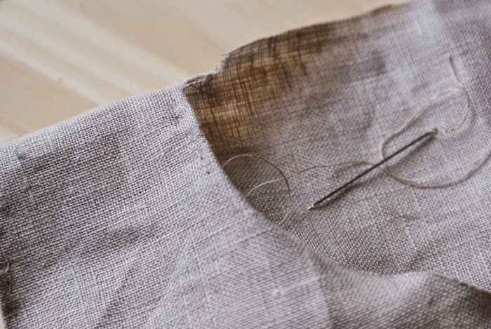 Fold the neckline and start sewing it. // Piegate lo scollo e cominciate a cucirlo.