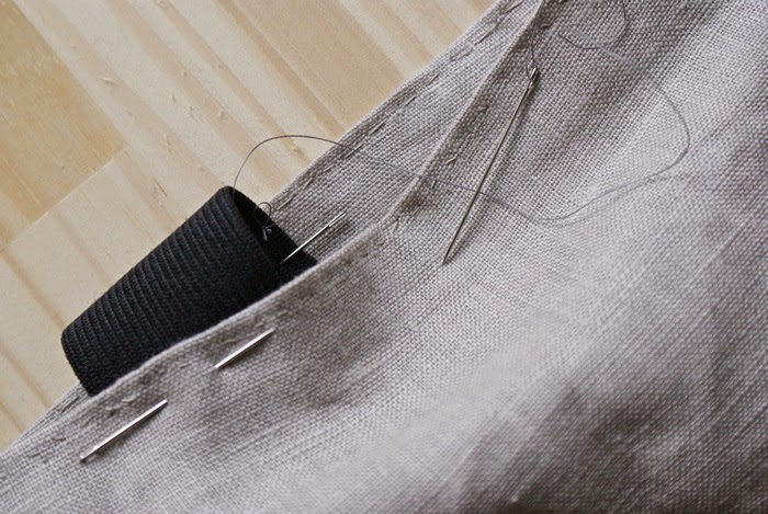 Sew the bands to the fabric. // Cucite le fasce al tessuto.